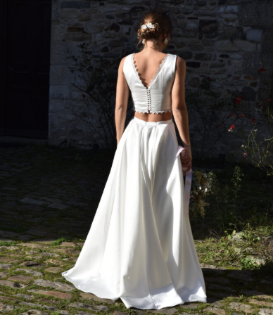Atelier Magda est une créatrice de robes de mariée et de soirée faite sur-mesure et 100 % made in France. Elle travaille avec des matières naturelles ou recyclées, soigneusement sélectionnées en Europe, pour des créations éthiques et raffinées. Chaque robe est conçue autour de 15 mesures, lors d’un travail collaboratif en toute convivialité — autour d’un café — afin que vous vous sentiez à l’aise et entièrement vous-même.